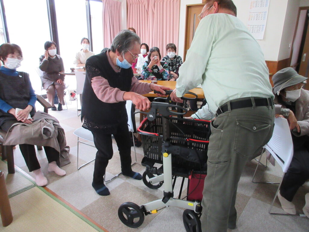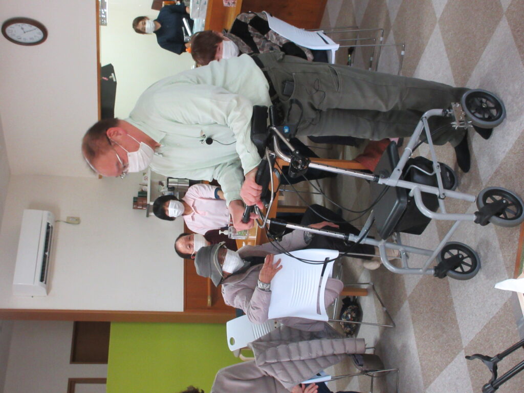 参加された方も歩行器で歩く体験をしてみました^^ 実際に使ってみることができて良かった、分かりやすかった、いろいろな機能があることに驚いた、などの感想が寄せられました。