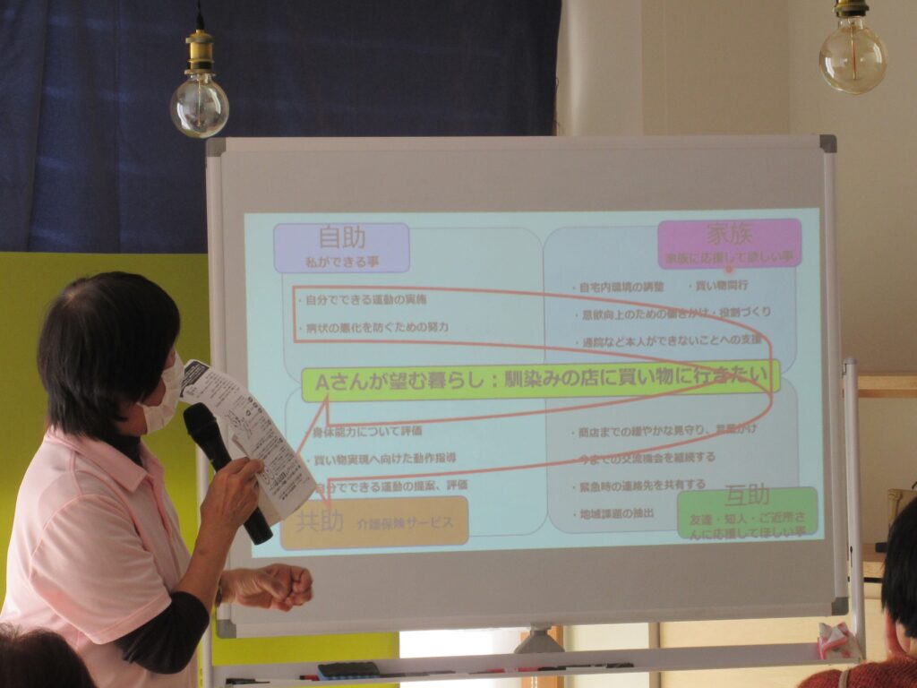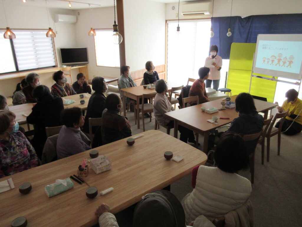 2月19日(木)、あわらんちカフェを行いました。愛笑のケアマネージャーからのミニ講話は「住み慣れた地域で自分らしく暮らす~もしもの時の介護保険~」というテーマでした。