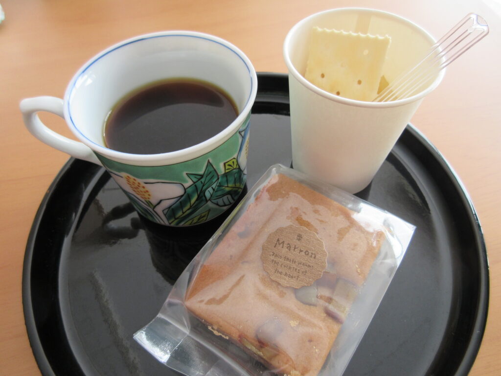 カフェタイムのおやつは東川原町「ベルン」のマロンパウンド。参加者の方から差し入れにいただいた煮りんごも添えて♪ よく食べ、よく話し、よく笑いました^^ 春のようなお天気の日差しに皆さんのエネルギーも加わり、会場はぽかぽかでしたね。