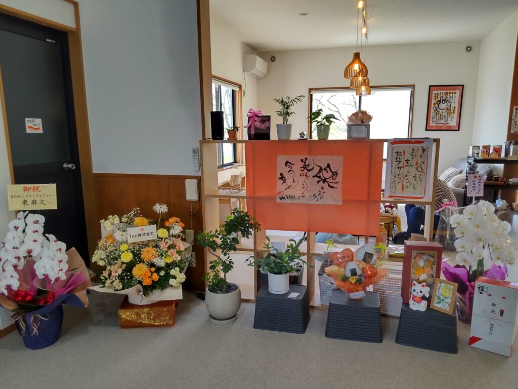 オープン日は春らしい良いお天気で、新しいスタートを切るには幸先が良く…♪ 予定通り11:00に開店しました。たくさんのお祝いの品をいただいて、店内は花盛り、とってもはなやかになりました☆